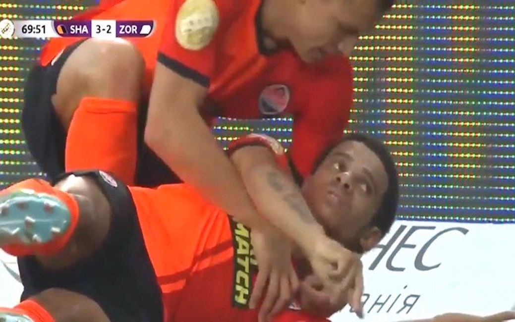 Já no segundo tempo do duelo diante do Zorya, Taison foi atingido na cabeça pelo próprio companheiro e compatriota Ismaily. Caído no gramado, ele começou a convulsionar numa cena assustadora, deixando todos os jogadores preocupados.